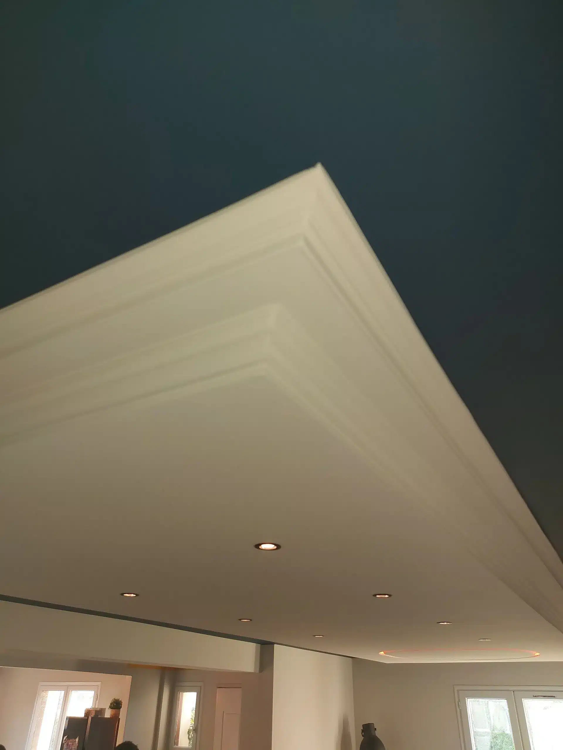 Parfois, une rénovation complète n’est pas nécessaire. Si le support est sain mais présente de légers défauts, un ratissage complet suivi d’une mise en peinture du plafond suffit à lui redonner sa jeunesse. Nous utilisons des enduits de lissage fins pour gommer les imperfections et préparons le support pour recevoir la finition de votre choix, mate ou satinée, afin de capter la lumière.
